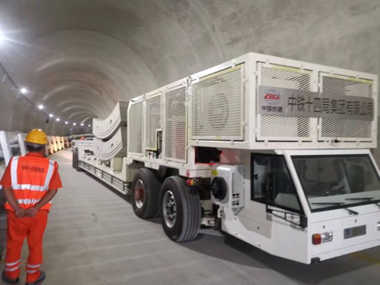 本批次車輛將作為工程建設(shè)中與超大直徑盾構(gòu)機配套的主要設(shè)備,承擔起從地面箱涵存放地,經(jīng)由隧道斜井,將整體箱涵運輸至盾構(gòu)機內(nèi)部吊機的重任。
