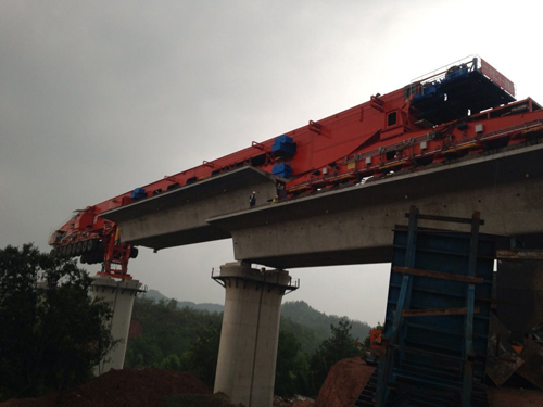 截止到2017年4月17日,由通聯(lián)科技生產(chǎn)的900噸運(yùn)架一體式架橋機(jī)安全完成昌贛鐵路第100片梁的架設(shè)。 此臺(tái)架橋機(jī)自完成現(xiàn)場(chǎng)安裝調(diào)試投入使用以來,憑借良好的性能和極高效率, 得到了客戶單位和監(jiān)理單位的一致好評(píng)。