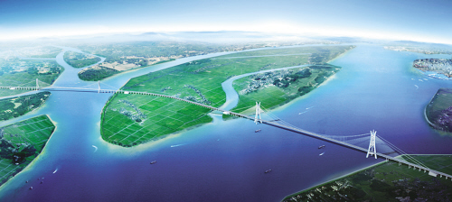 Humen No.2 Bridge is the important part of Guangdong Highway system. Total length 12.89km, 8 lanes, design speed 100km/h. The 1688m main span of this steel girder cable stayed bridge will be the second to the akashi keiko bridge in Japan.