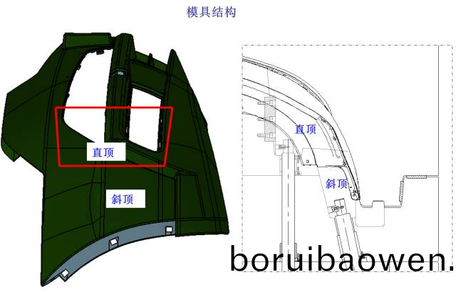如下圖(tu)所(suo)示(shi),産(chan)品兩頭採(cai)用直頂+斜頂(ding)的(de)機構(gou)進(jìn)(jin)行脫糢。